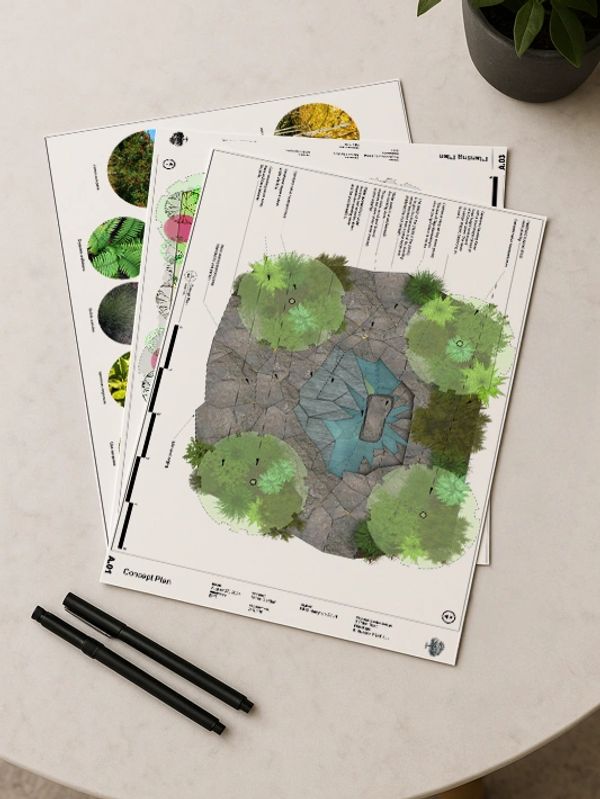Technical drawings, detailed planting plans and construction-stage support are priced separately once the scope is clear.